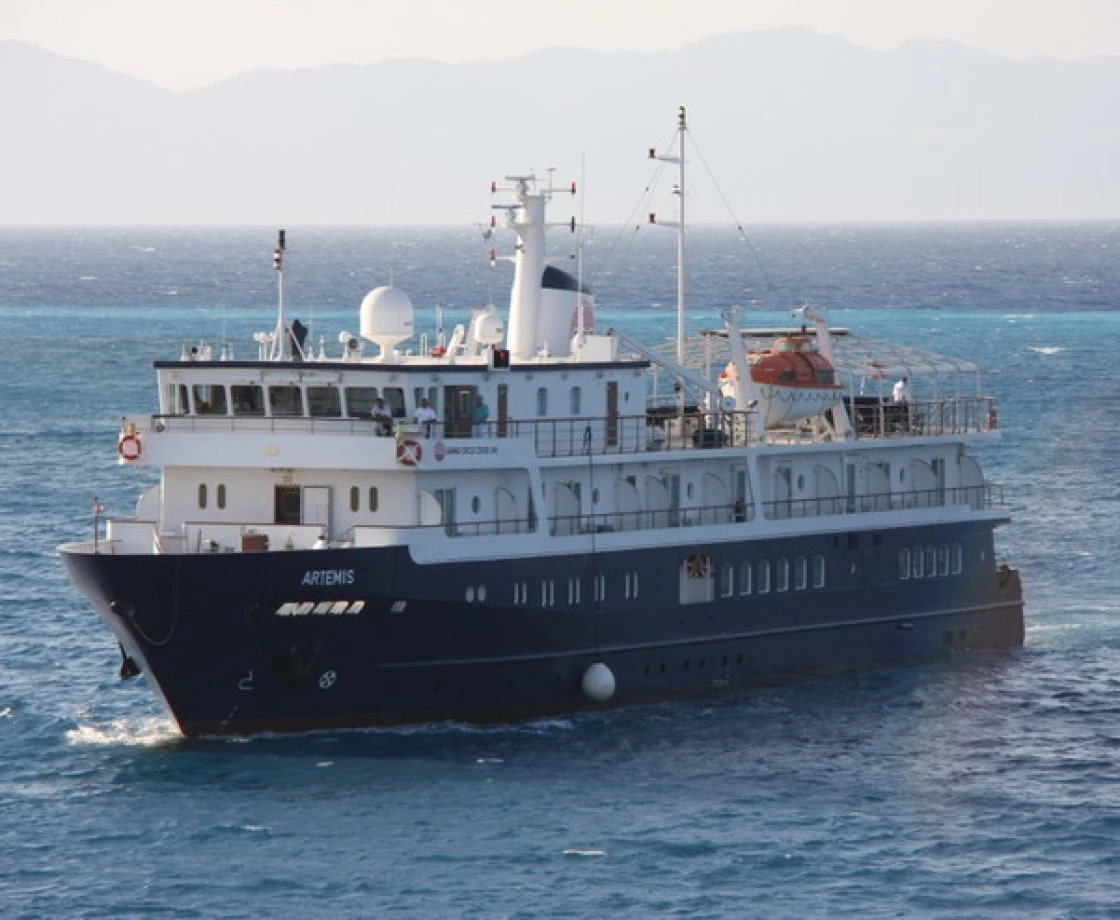 La M/V Artemis di Grand Circle Cruise Line è una nave da crociera di lusso, simile a un mega-yacht, costruita nel 2007, progettata per viaggi intimi e di lusso, che accoglie solo circa 50 passeggeri (26 cabine) divisi in due piccoli gruppi, ognuno con il proprio Program Director, offrendo un servizio personalizzato con un rapporto quasi 1:2 tra equipaggio e ospiti, con servizi moderni e cabine confortevoli, operando principalmente nel Mediterraneo.